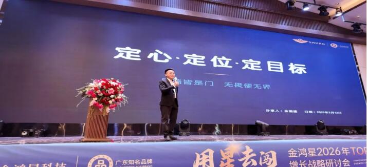 随后,广东金鸿星董事长金国建先生带来题为《定心·定位·定目标》的战略演讲。他深入剖析行业趋势,明确金鸿星2026年的战略定位与发展路径,提出“以战略定力应对变化,以持续创新驱动增长”的核心主张。