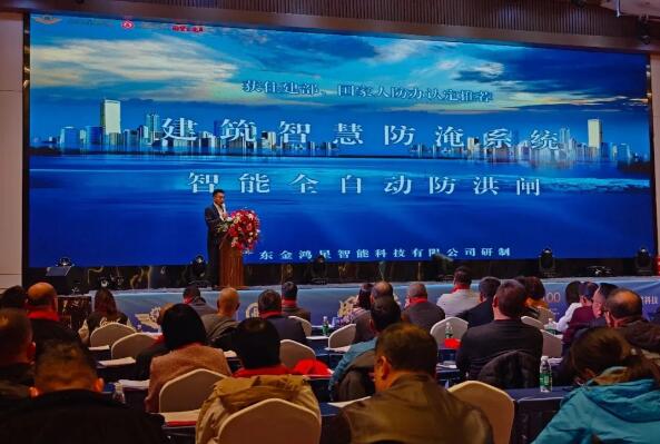 言出必行,创新为证,金董在演讲中重磅发布了金鸿星自主研发的全新一代智能防洪闸系列新品。现场通过一段极具震撼力的演示视频,生动呈现了该产品在模拟极端暴雨、洪涝场景下的快速自动升降、智能水位感应与毫秒级应急响应能力,这不仅体现了金鸿星在水患主动防御领域的重大突破,更是公司多年来在结构力学、智能传感、自动控制等领域持续投入研发、深耕技术的集中体现。这款产品的推出,不仅是对“主动防御、智能联动”新阶段的定义,更是金鸿星以自主创新为核心驱动,持续引领行业标准、守护社会公共安全的坚实承诺。